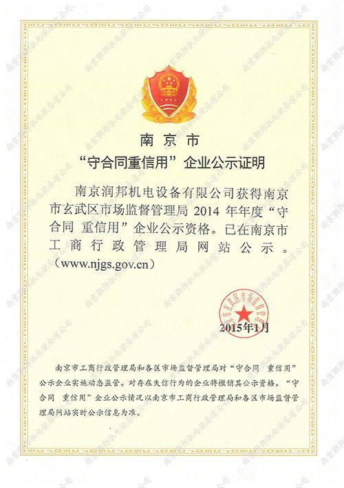 2014年區(qū)級(jí)重合同守信用企業(yè)