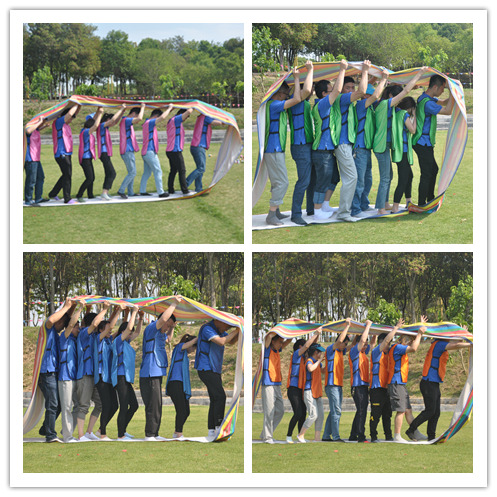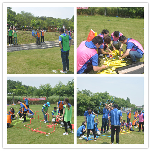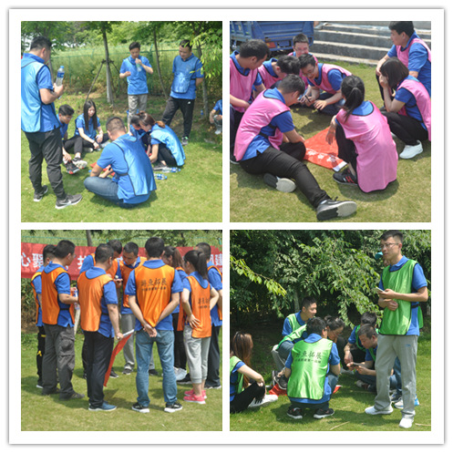 活動首先由歡快的“好、很好、非常好、耶”破冰活動拉開序幕,大家迅速的融入團隊,建立信任。緊接著在拓展教練的指導下大家被分成了四組,各組確定隊長后經過一番頭腦風暴,設計好隊名、LOGO、口號、對歌及隊形并逐一精彩亮相。