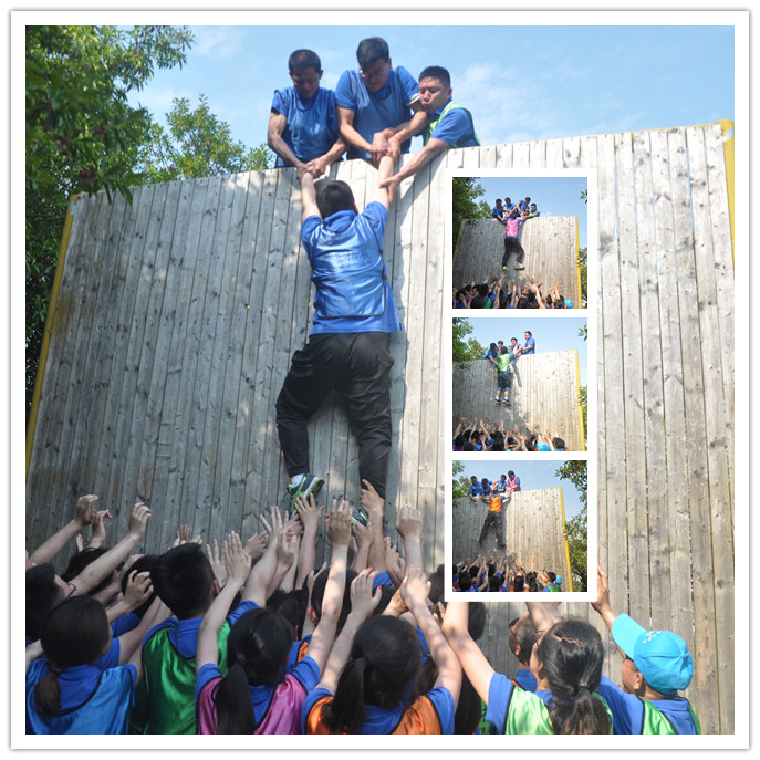 最后一個項目勝利墻是整個團隊完成的。教練要求所有人在15分鐘內不借外力的情況下翻越4.2米高的墻。剛開始大家有點不太相信能夠成功。最終在教練的指導下,在所有人的齊心協(xié)力下,13分鐘就完成了任務。特別感謝在下面做人梯的伙伴,沒有他們的付出,就沒有成功后的喜悅。